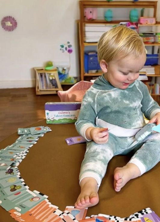 الجهاز يساعد الطفل يسمع الكلمة وينطقها بطريقة صحيحة.